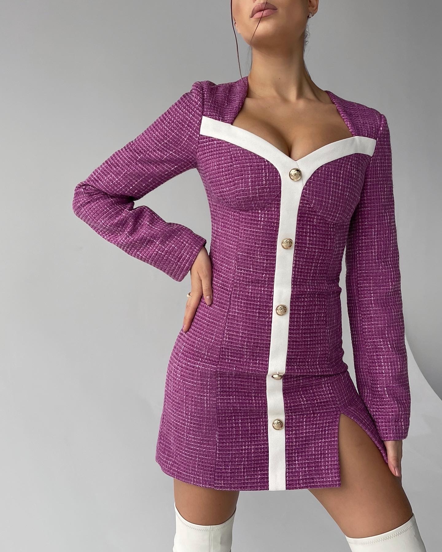 - Твидовое платье с винтажными золотыми пуговками